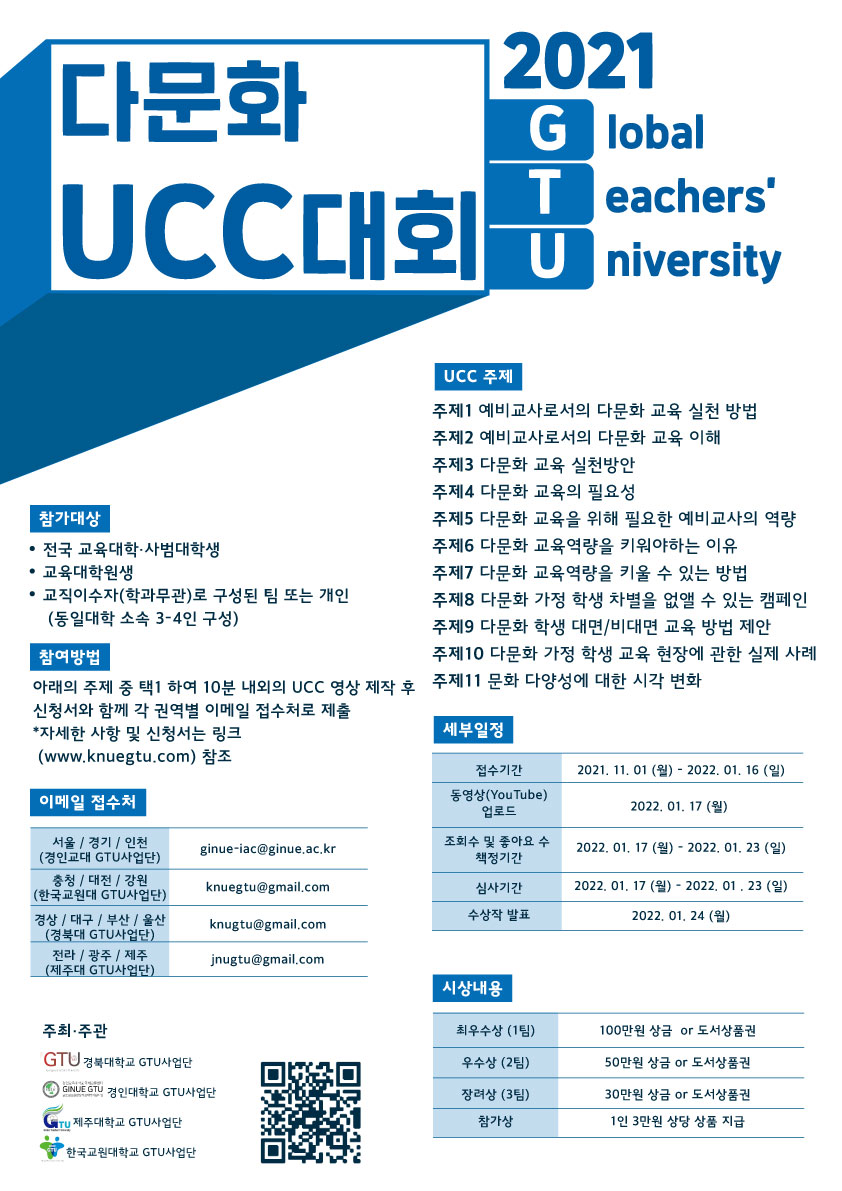 [외부기관공고] 경북대학교 2021학년도 GTU 다문화 UCC 대회 안내