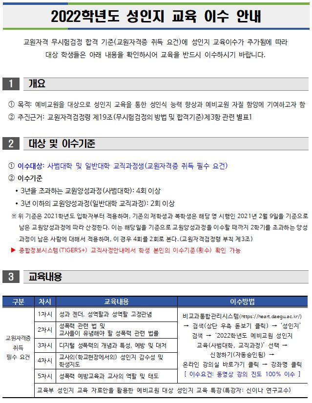 [성인지교육] 2022학년도 예비교원 대상 성인지 교육 실시 안내