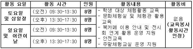 1. 봉사기간: 2023. 2. 18.(토) ~ 5. 21.(일), 주말 및 공휴일 운영