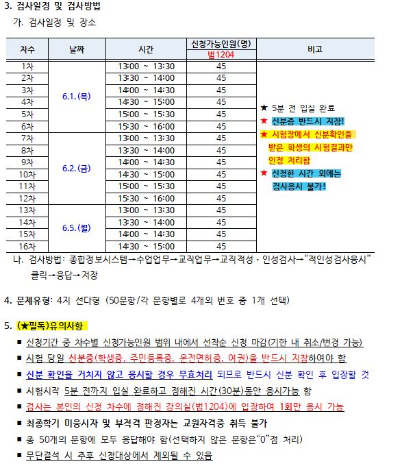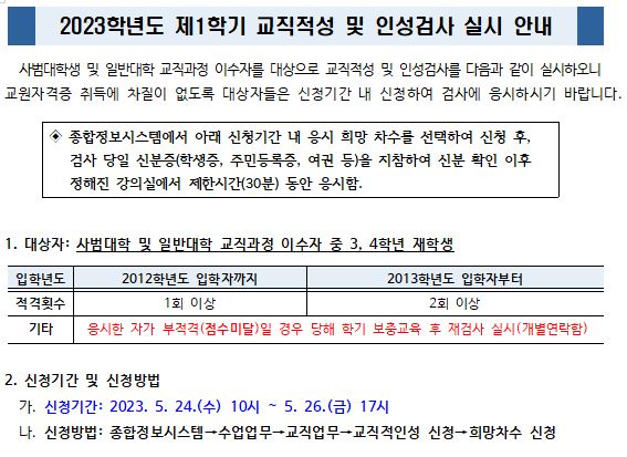 [교직] 2023-1학기 교직적성 및 인성검사 실시 안내