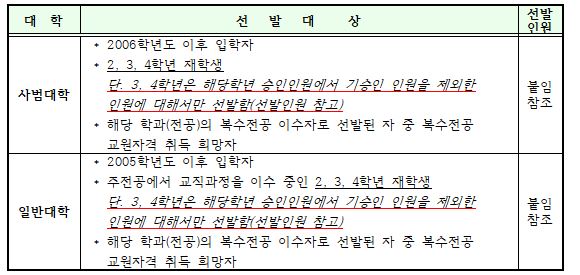 ▷ 교직복수전공 이수대상자로 선발된 학생이 해당학과 복수전공을 포기할 경우 교직복수전공 이수대상자 승인이 취소됨