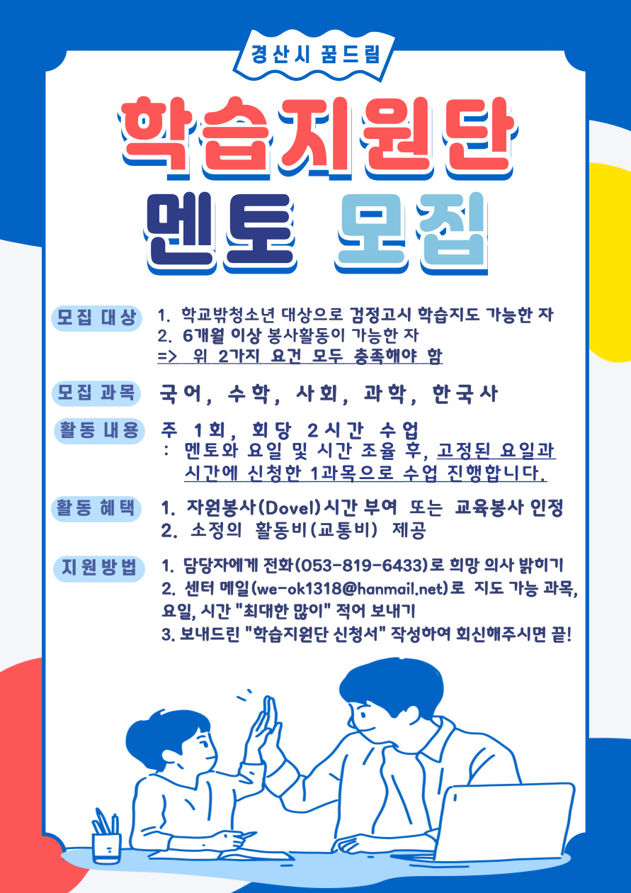 [교육봉사] 2025 경산시 꿈드림 검정고시 학습지원단 모집 안내